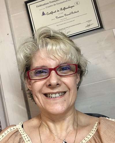 Ce fut la révélation : la réflexologie est une méthode douce, compatible et bénéfique à tout le monde. Et réaliser les gestes réflexologiques avec une certaine bienveillance, percevoir l’apaisement et le bien-être sur le visage de la personne recevant la séance, expliquent mon intérêt de cette technique manuelle. Je m’inscrivis alors à l’école RTE du Sud-Est pour l’acquisition de bonnes bases. Depuis ma certification, je perfectionne mon savoir à travers divers ateliers pour les post-gradués (voir rubrique Formations et Perfectionnements suivis).